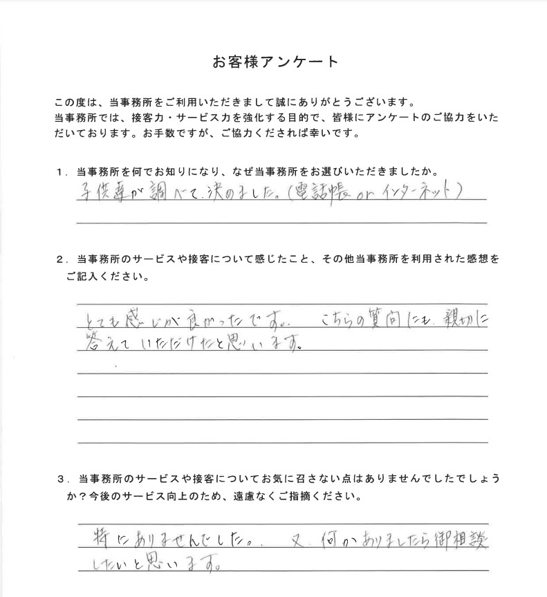 - この度は当事務所にご依頼くださり誠にありがとうございました。