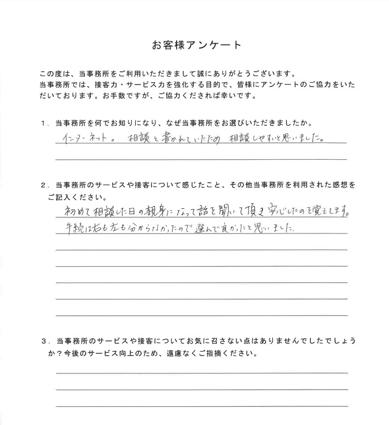 手続は右も左も分からなかったので選んで良かったと思いました。