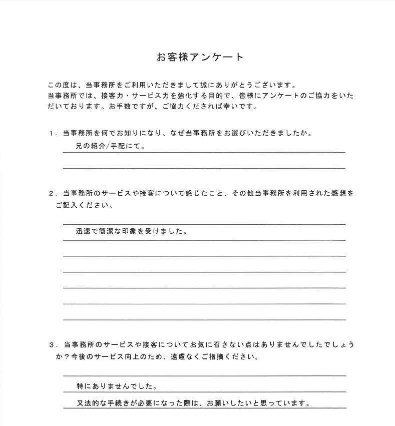 - この度は当事務所にご依頼くださり誠にありがとうございました。
