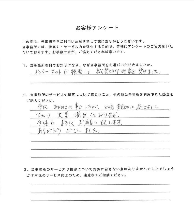 - この度は当事務所にご依頼くださり誠にありがとうございました。
