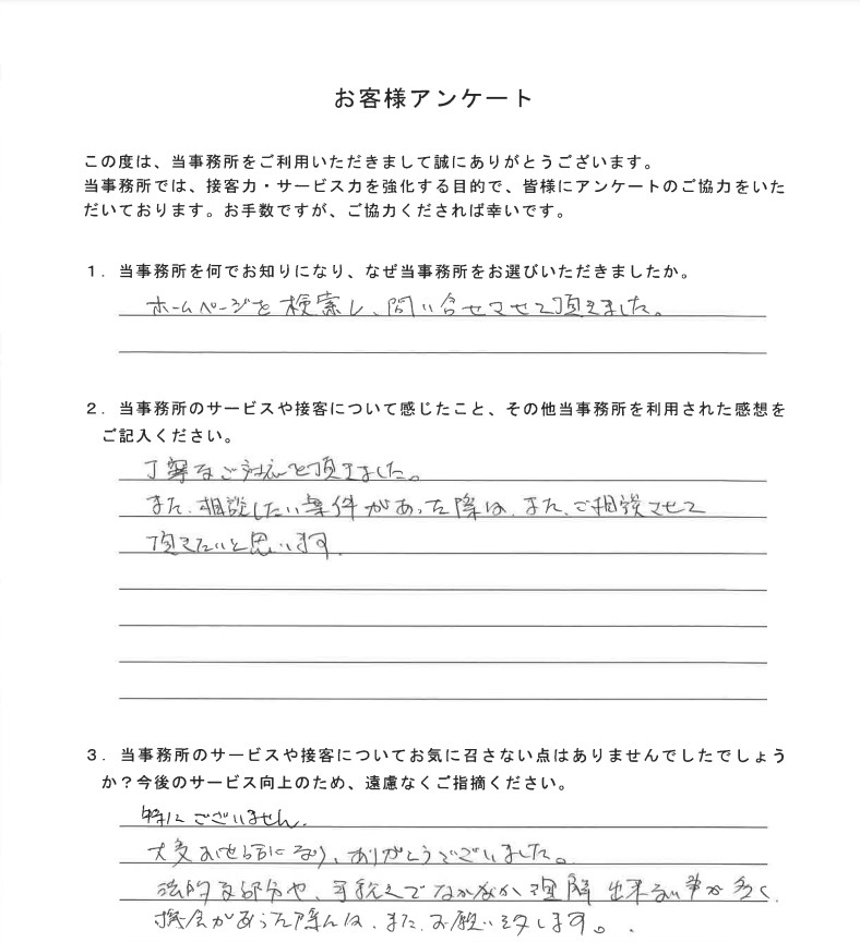 - この度は当事務所にご依頼くださり誠にありがとうございました。