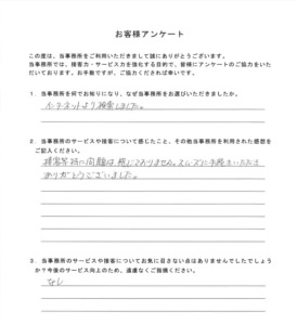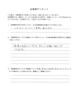 - この度は当事務所にご依頼くださり誠にありがとうございました。