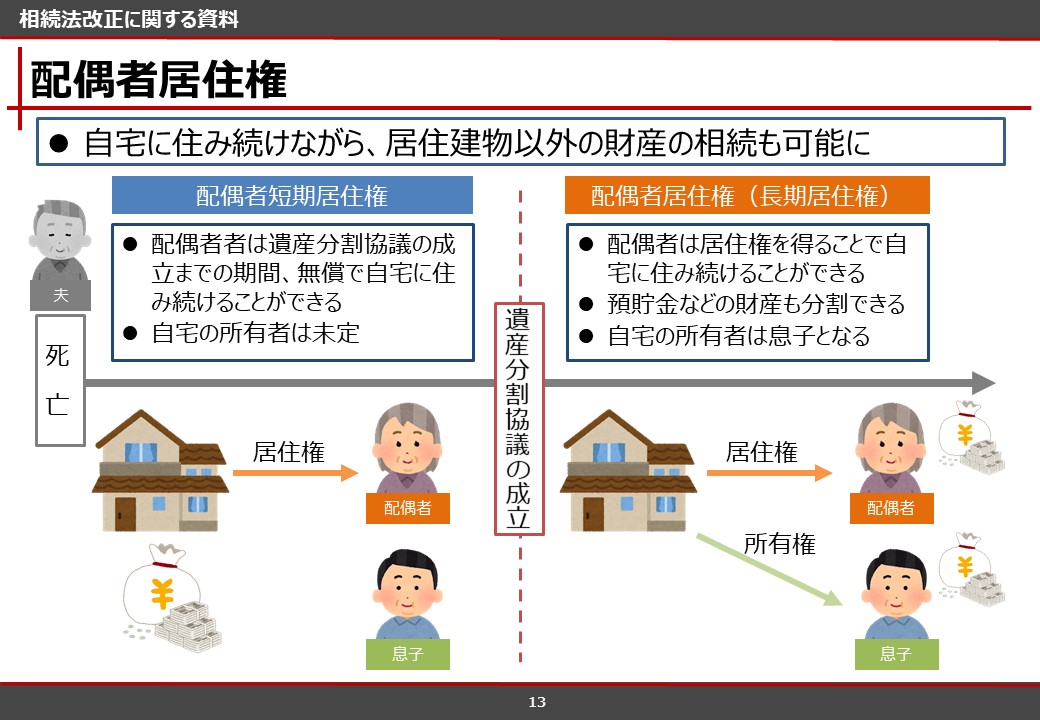 「配偶者短期居住権」については、従来も判例が認めていたものですが、それが改正で法律に明記されたものです。